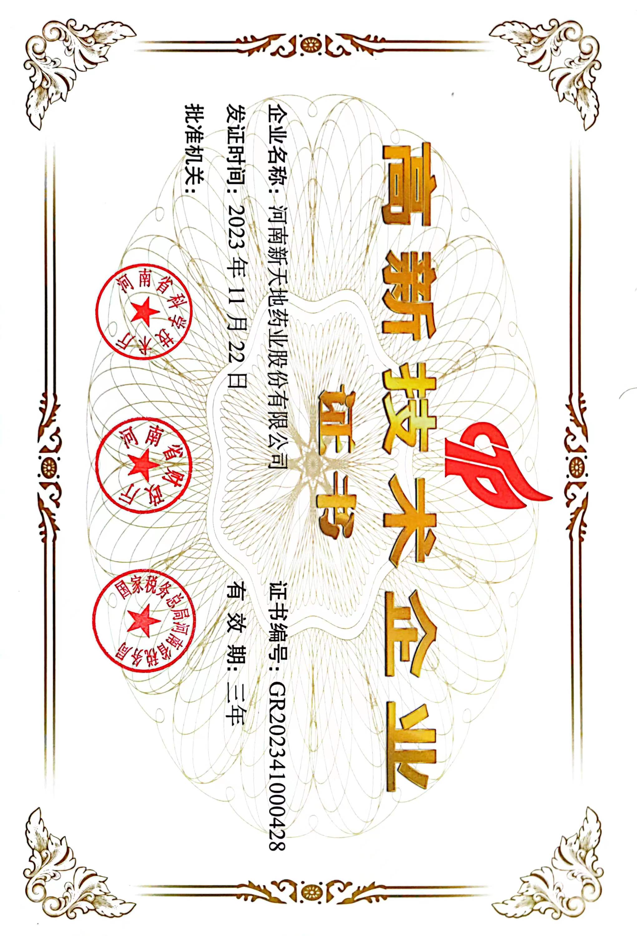 公司是国家级高新技术企业、商务部重点企业、河南省高新技术产品出口重点企业、河南省创新型试点企业、河南省知识产权优势培育企业、河南省百户高成长性中小企业,先后被批准成立河南省抗生素中间体工程技术研究中心、河南省博士后研发基地。公司先后于2006年和2007年获得英国摩迪国际认证有限公司ISO 9001:2000质量管理体系、BS EN ISO 14001:2004环境管理体系、OHSAS 18001:1999职业健康安全管理体系“三标一体”认证。