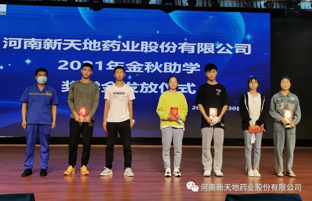 公司秉承“赢商载道,厚积尚德”价值观,履行企业的社会责任,践行尊师重教理念,坚信“知识改变命运”助学回报乡梓,开展金秋助学等多种活动支持关注员工子女成长发展,从有记录可查的2012年至今已累计捐助近30万元,近百名员工子女受到资助,很多新天地药业子弟带着新天地人的殷殷期望,迈入社会成长为中坚力量在各行各业大展宏图,为理想而拼搏。